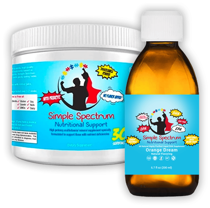 Simple Spectrum Supplements are designed to provide the nutritional needs of the developing nervous system with extra support for individuals with autism by addressing potential dietary deficits with our spectrum vitamins and mineral rich formula.